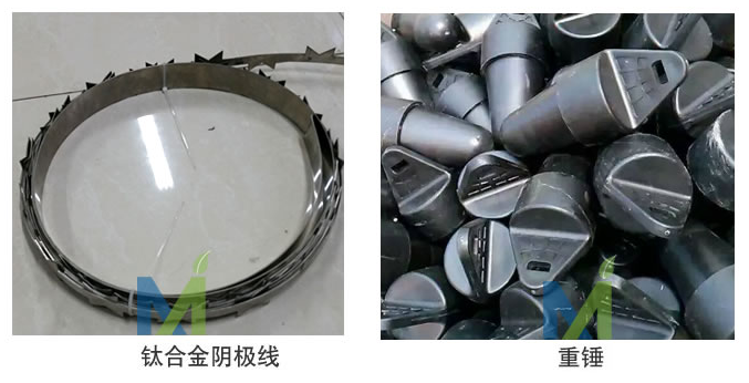左上:重錘 右上:鈦極線 左下:鉛銻合金陰極線 右下:2205雙相鋼陰極線