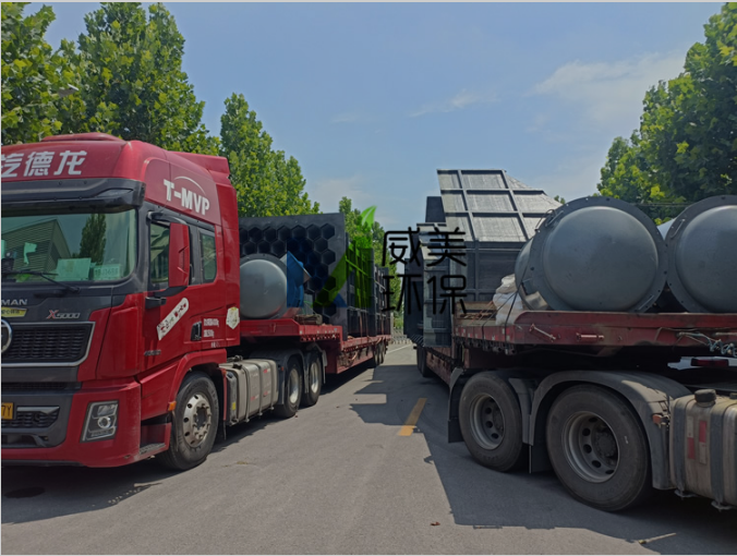 氰尿酸尾氣治理濕電除霧器裝車完畢,準備出發